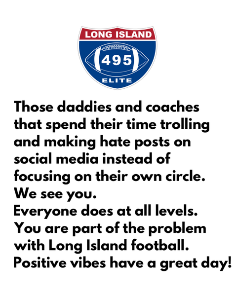 We see you. Everyone does. And we're going to start calling you out publicly by name for your public hatred on young children and posting your screenshots, videos, and negativity that is hurting Long Island football and creating division rather than kindness and unity.